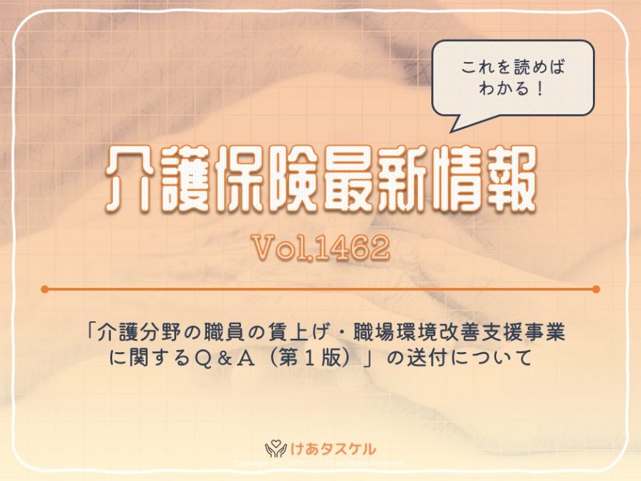 厚生労働省より介護保険最新情報Vol.1462「介護分野の職員の賃上げ・職場環境改善支援事業に関するQ&A(第1版)」の送付についてが令和8年1月21日に発出されました。