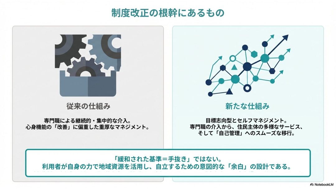 内容後半は、今回の改正を反映した総合事業の運用に関する詳細なマニュアルとなっています。主に以下のルールや手順が詳しく解説されています。